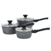 • Includes: 1 x 24cm frypan, 1 x 28cm frypan, 1 x 16cm saucepan with lid, 1 x 20cm saucapan with lid, 1 x 24cm casserole dish with lid